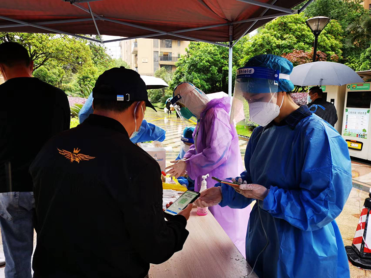 管控小區(qū)中,此刻白衣作戰(zhàn)袍集結(jié)于此!在小區(qū)尋求業(yè)主幫助的時候,冶金物資領(lǐng)導(dǎo)第一時間主動報名,沖鋒在前,搬運物資,測量體溫,貢獻(xiàn)自己的力量;在杭鋼集團(tuán)召集杭鋼青年作志愿者的時候,冶金物資的青年員工義無反顧地填下了自己的名字,凌晨穿上防護(hù)服,陸續(xù)進(jìn)入前線,維護(hù)秩序、掃碼核驗、協(xié)助上門采樣……